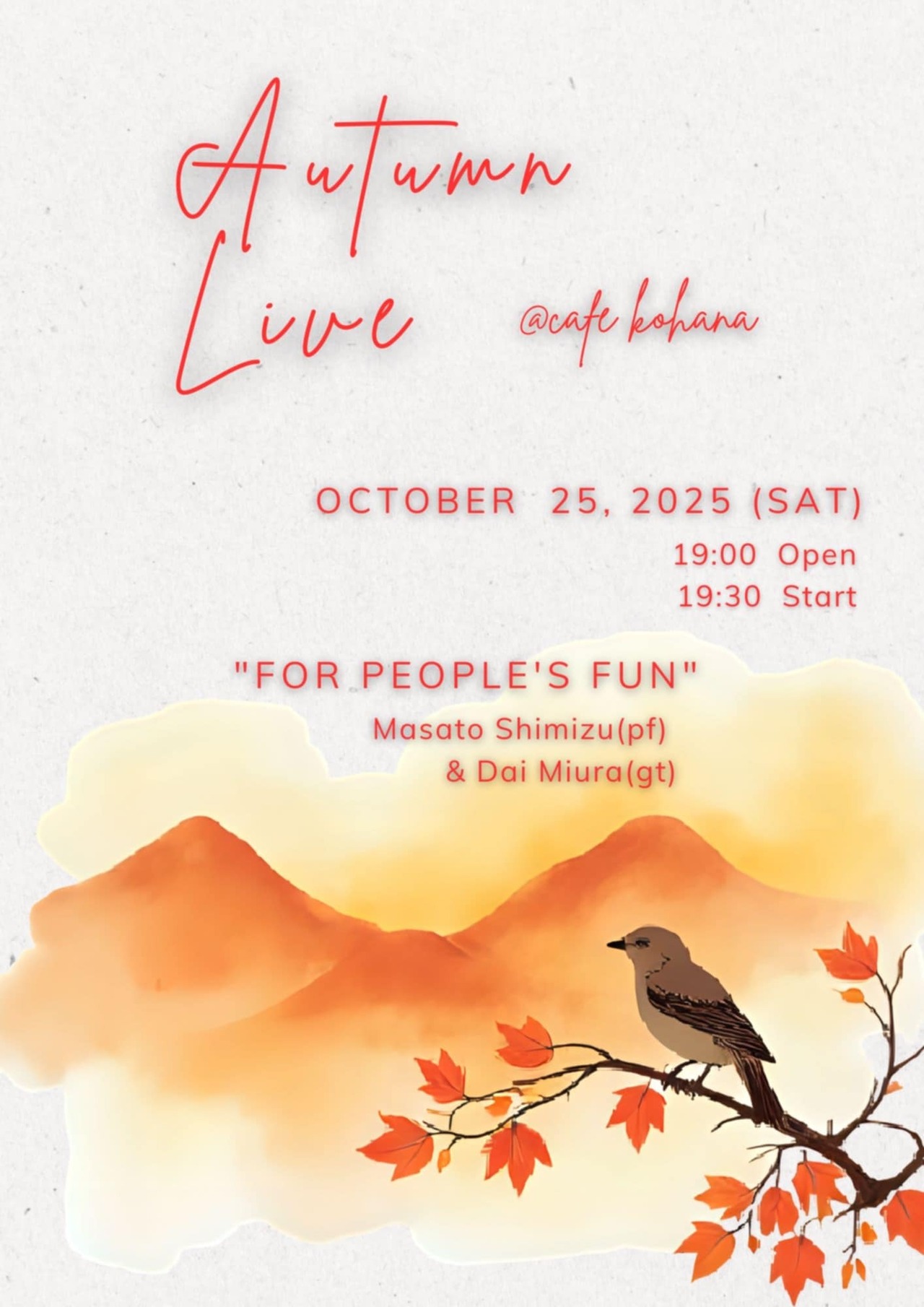 弊店ライブにご出演いただいております、「F.P.F(For People's Fun)」様のライブ配信記念ポスターです。